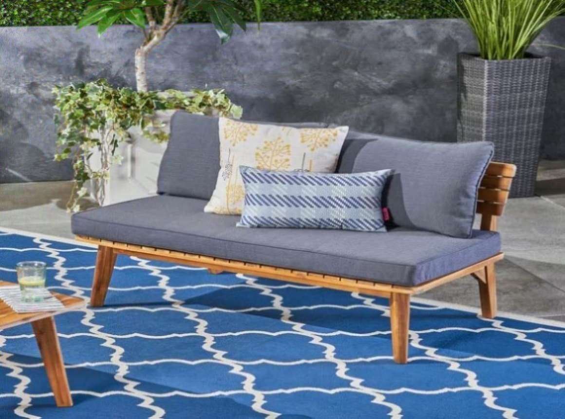Invite a taste of mid-century sophistication into your patio area with this modern and functional outdoor loveseat, a contemporary take on a classic aestheticIncludes: One (1) Loveseat. Material: Acacia Wood. Cushion Material: FabricFabric Composition: 100% Polyester. Finish: Teak. Cushion Color: Gray. Hand Crafted Details. Some Assembly RequiredProduct Dimensions: 26.75 inches...