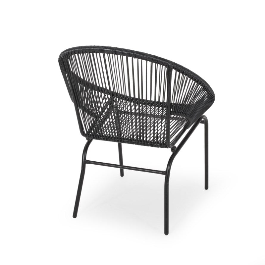 Spruce up your outdoor entertainment space with a set of chairs that offers a streamlined, modern style.Sleek and modern design with clean lines and round silhouetteDurable and versatile woven polyethylene rattan materialReliable support provided by iron frame with polished black finishSet includes two chairs with dimensions of 28.75" W x...