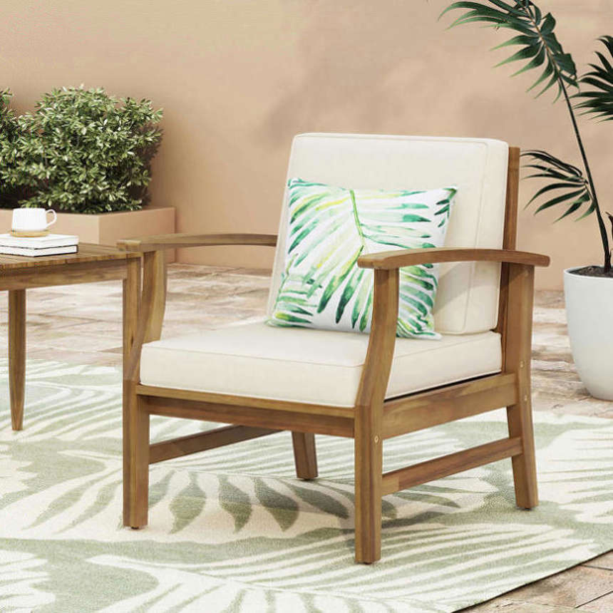 This club chair accents your patio with a perfect combination of fresh colors and a modern look.ACACIA WOOD: This durable hardwood is a solid, heavy frame that naturally withstands the elements and resists wear and tear.SLAT PANEL DESIGN: This club chair features beautiful slat paneling, giving it a sophisticated, classic...