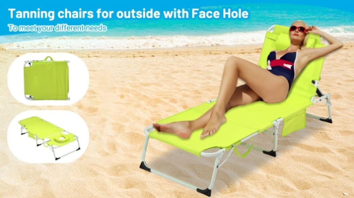 3-in-1 Heavy Duty Tanning Chair with Face Hole Adjustable 5-Position Folding Chaise Lounge Chairs W3399P310389