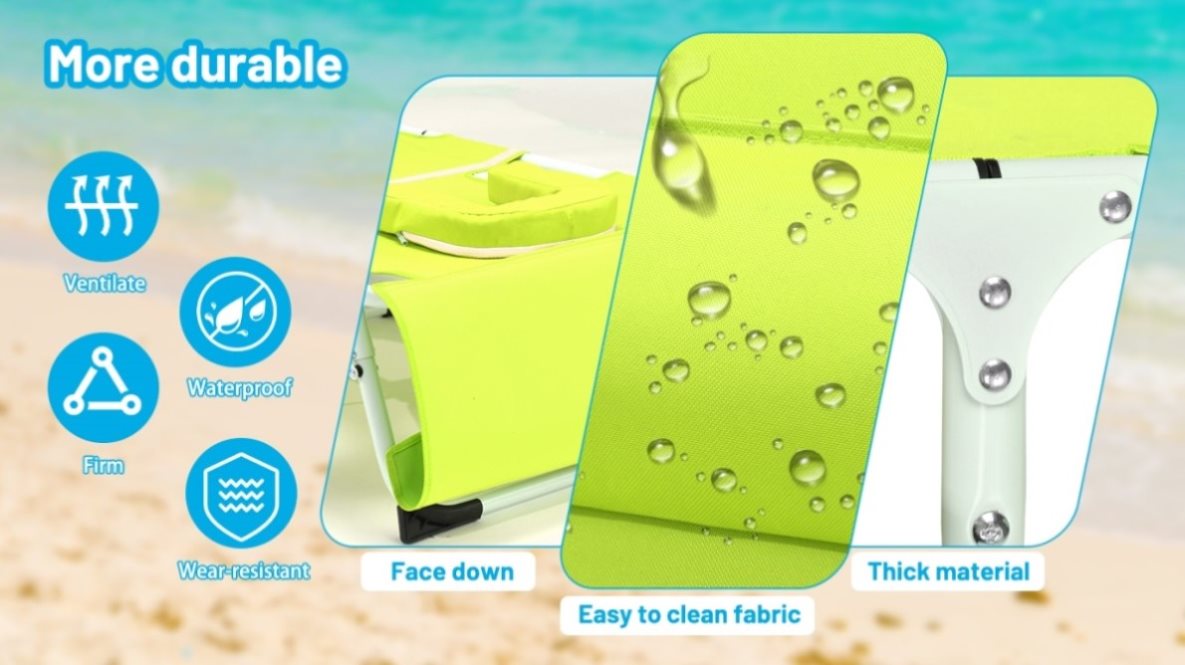 Comfortable Outdoor Lounge Spacious folding chaise lounge chair, suitable for individuals up to 6.2 feet. Breathable fabric and ergonomic design provide a perfect balance of firmness and softness, reducing muscle tension.