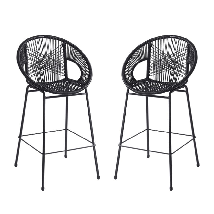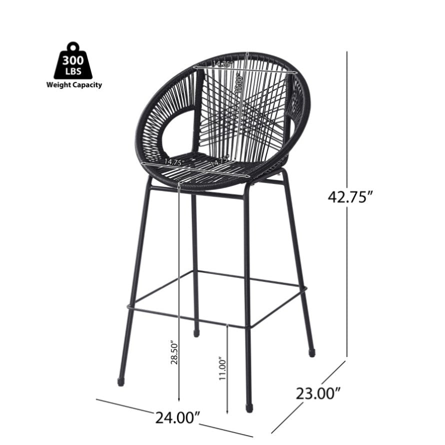 Ferrara Outdoor Patio Black Faux Wicker Barstool, Set of 2 N775P266222B