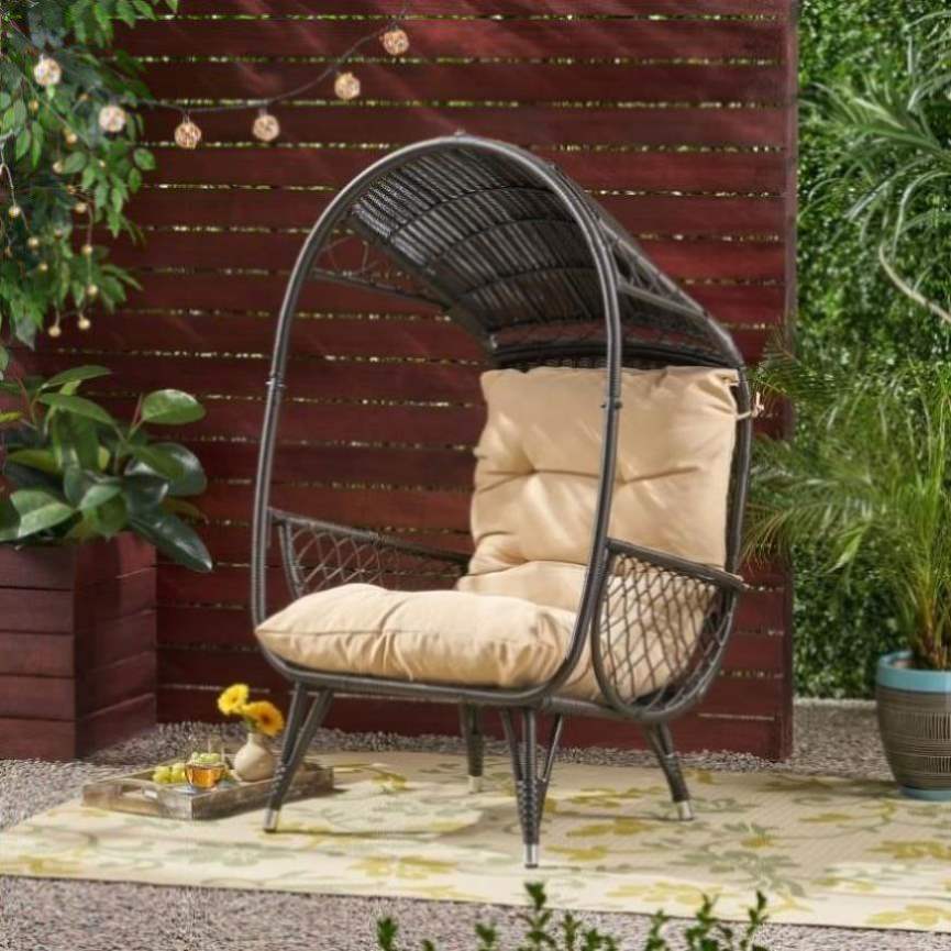 Cozy up in your backyard with a chair that will literally encompass you in delightful coziness. Featuring a gorgeous basket shape and intricate woven design, our outdoor chair not only gives your patio a modern look but also offers incredible comfort. This is constructed with beautifully wrapped wicker with a sturdy metal frame, allowing you hours of much-needed relaxation whenever you need it. Finished with plush and fresh water-resistant cushions, this piece is a truly extraordinary addition to your summer lounging. Includes: One (1) Basket Chair Material: Faux Rattan Frame Material: Iron Cushion Material: Water Resistant Fabric Cushion Composition: 100% Polyester Multiple Color Options Hand-Crafted Details Assembly Required Dimensions: 32.50 inches deep x 36.50 inches wide x 56.75 inches high Seat Dimensions: 23.00 inches deep x 25.50 inches wide x 13.50 inches high Arm Height: 25.50 inches