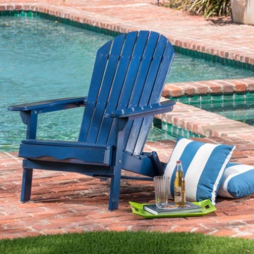 Experience relaxation and comfort in the great outdoors with the Hanlee Acacia Wood Folding Adirondack Chair . Made of water-resistant acacia wood, this chair boasts a slatted seat and back, wide armrests, and a foldable design for easy storage.