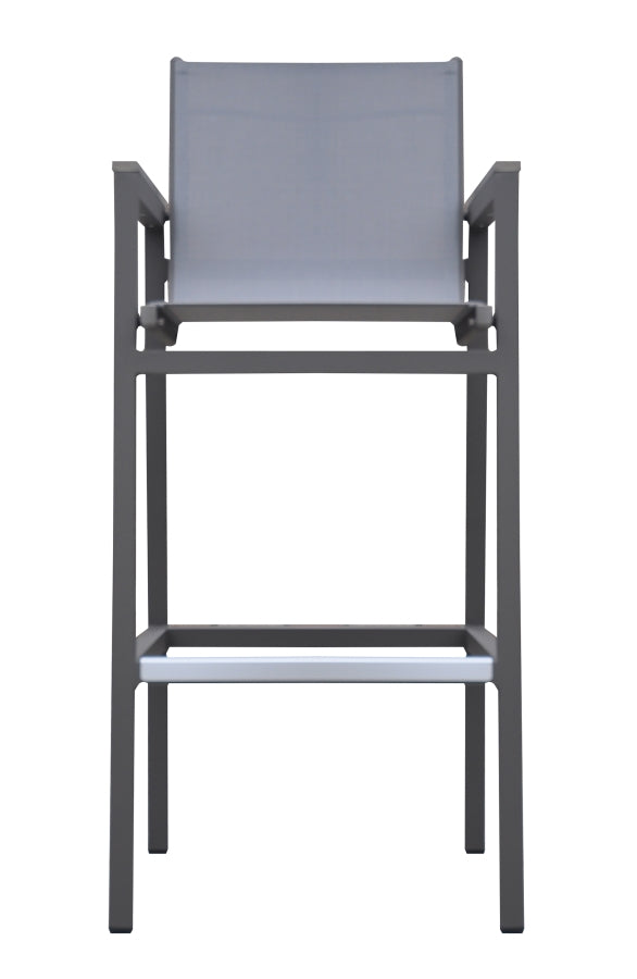 Marina Outdoor Patio Barstool in Gray Powder Coated Finish with Gray Sling Textilene