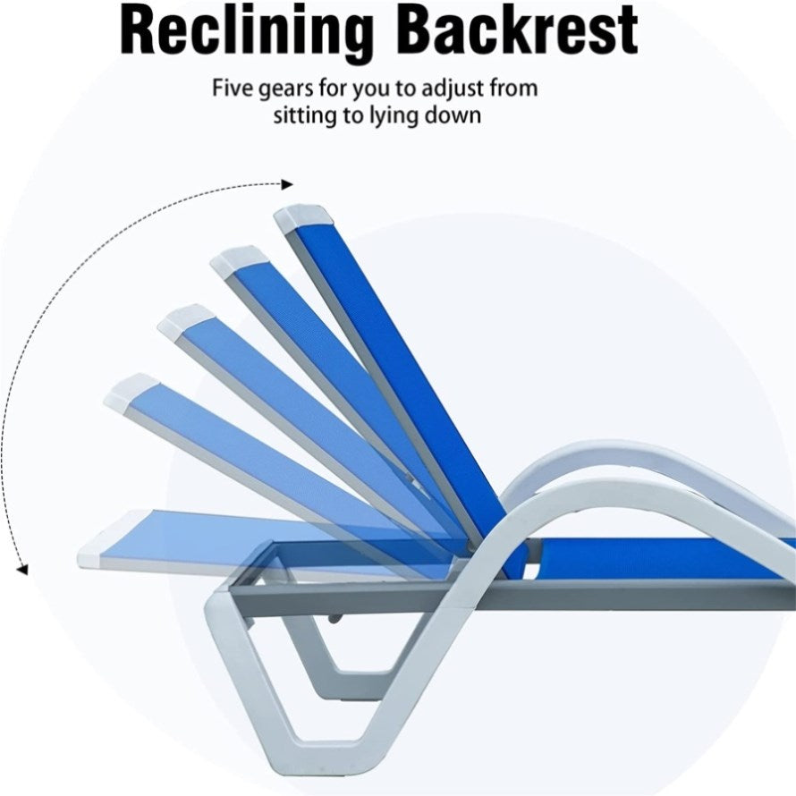 :Rust-resistant powder-coated Grey aluminum frame and white plastic triangular structure legs. The modern lounge chair support with max weight 350lbs.DURABLE TEXTLIENE MESH:With UV-resistant Textilene for outdoor long lasting use, this patio chaise lounge is breathable, waterproof, quick drying and high strength support.ADJUSTABLE POSITION&LAY FLAT:This pool lounge chair with 5 adjustable...