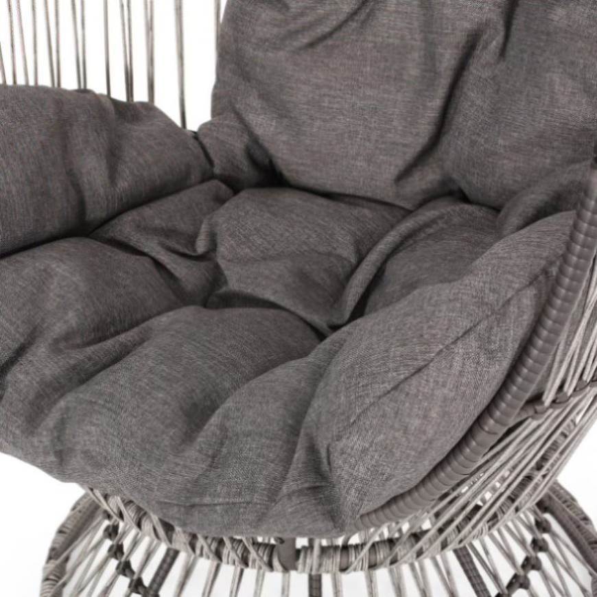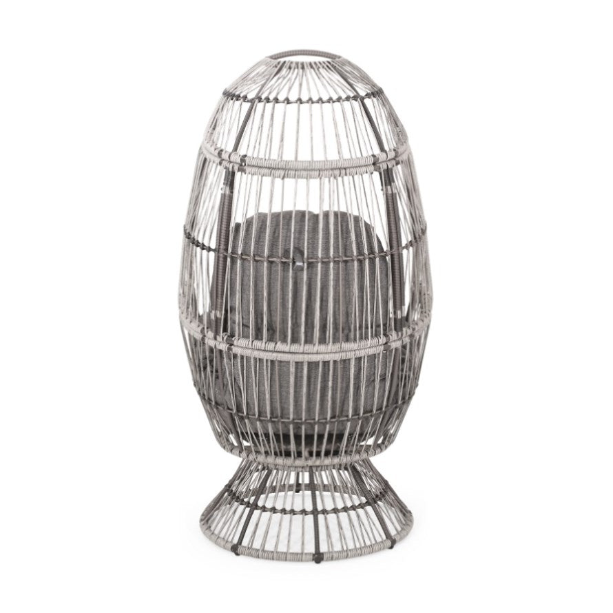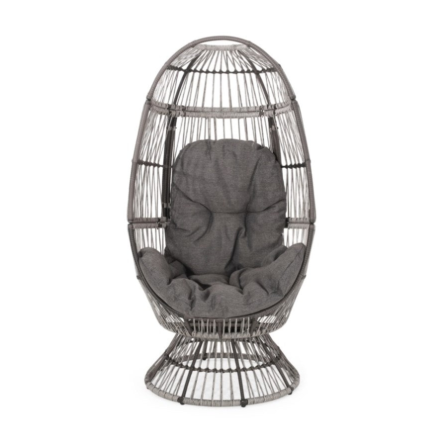 Bring a dash of fun-loving comfort to your backyard or patio space with our unique swivel egg chair. Featuring a gorgeous basket shape and delightfully encompassing design, our outdoor chair not only gives your patio a modern look but also offers incredible comfort. This is constructed with beautifully wrapped rattan and a convenient swivel function, allowing you hours of much-needed relaxation whenever you need it. Finished with plush and fresh water-resistant cushions, this piece is a truly extraordinary addition to your summer lounging. Includes: One (1) Egg Chair Material: Faux Rattan Cushion Material: Water Resistant Fabric Composition: 100% Polyester Frame Material: Iron Finish: Gray and Taupe Cushion Color: Dark Gray Hand-Crafted Details Assembly Required Dimensions: 28.00 inches deep x 30.50 inches wide x 58.00 inches high Seat Dimensions: 21.75 inches deep x 20.00 inches wide x 15.00 inches high