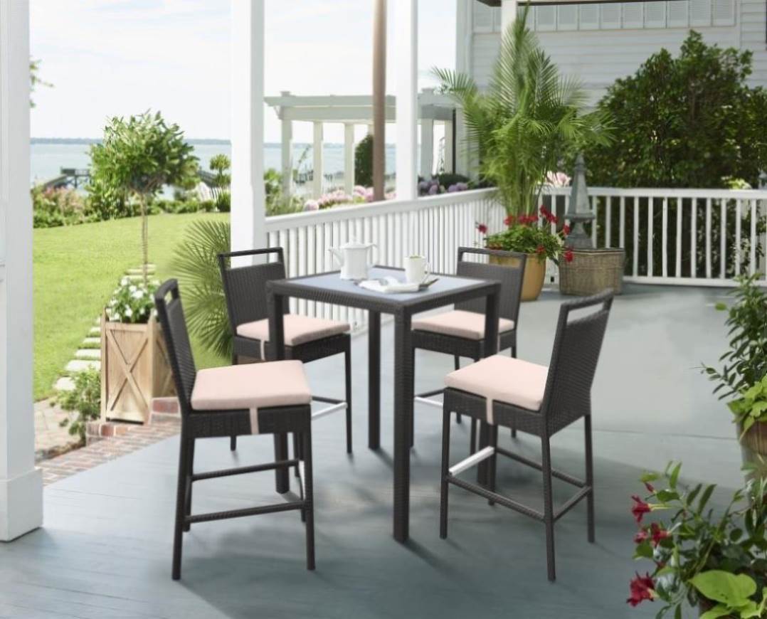 Tropez Outdoor Patio Wicker Barstool in Black Powder Coated Finish with Beige Fabric CushionTall back design provides an exceptional degree of comfort and supportFoam padded removable cushion is water/UV resistant which enhances comfort, aesthetic appeal, and durabilityProduct Dimensions: 18.5"W x 22.5"D x 46.5"H SH: 29"Features footrest for added supportNOTE: Fabric...