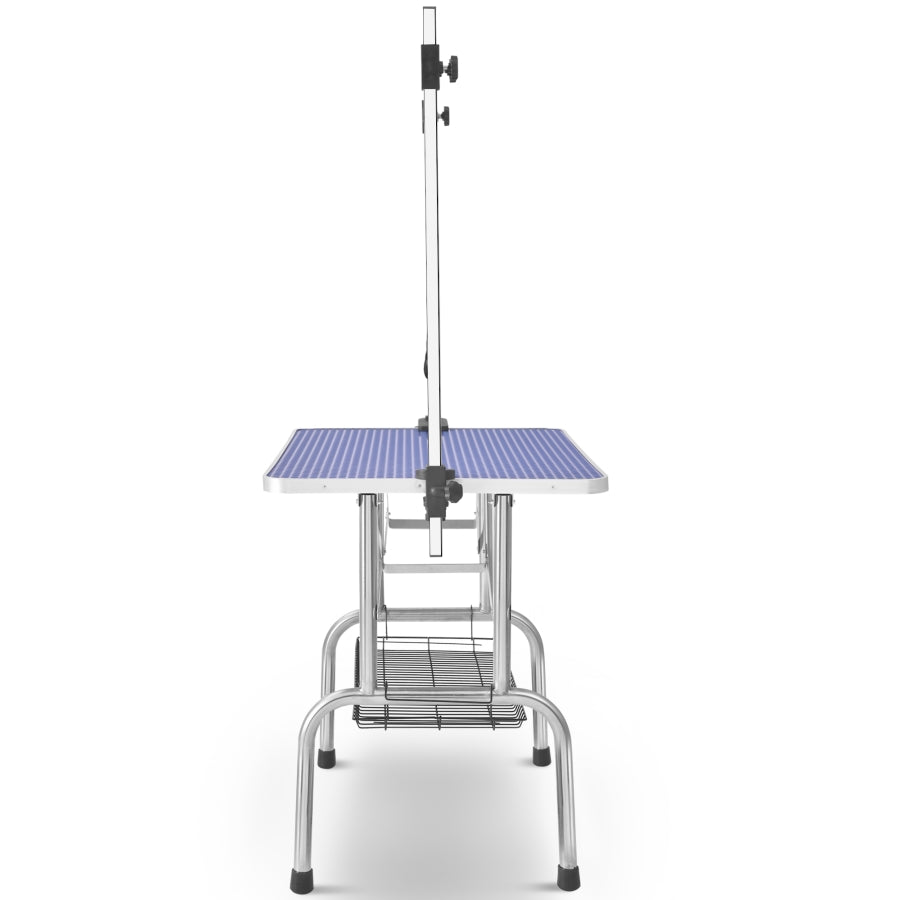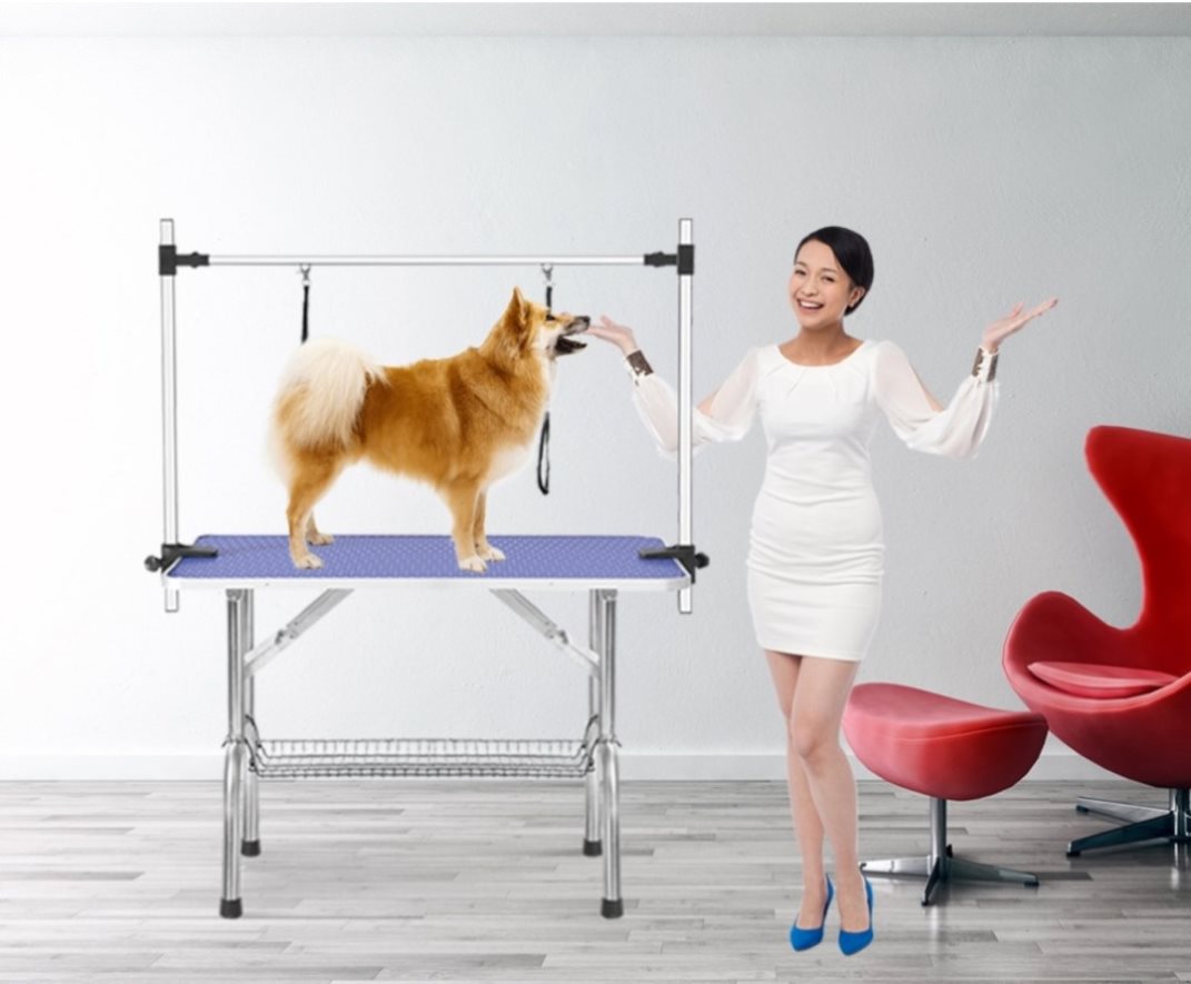 This grooming table is great for your pet dog or cat. It will raise the height of your pet so that you can reach him easily for bathing, trimming, drying, grooming or other things you want to do. Our product is fine designed and the table is ribbed rubber surfaced which can ensure the safety for your baby pets.