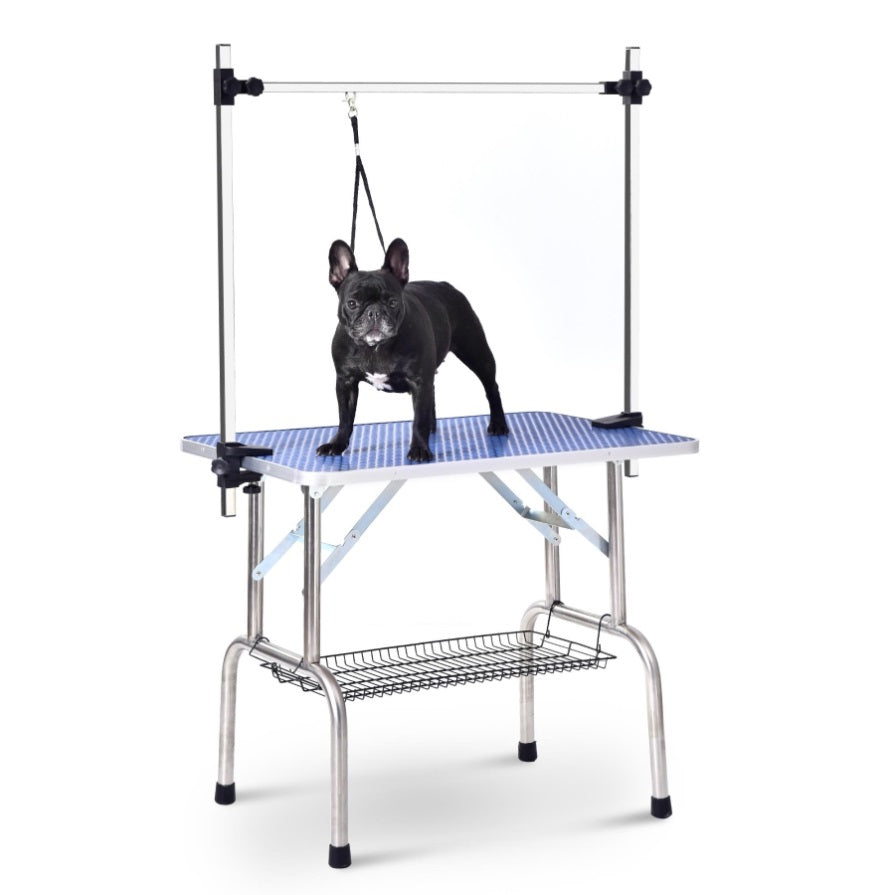 Comes with a clamp-on Adjustable Grooming Arm and security nylon Loop to Fix the dog for grooming.