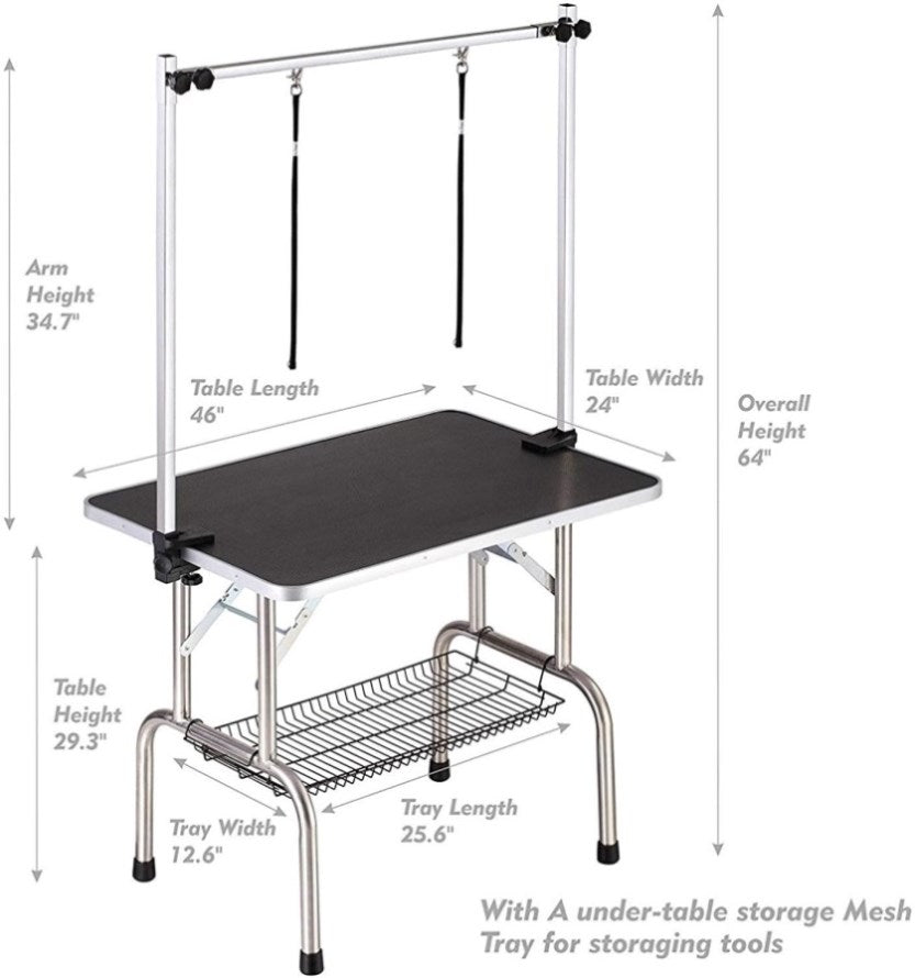 【Solid and Durable Grooming Table】The Pet Grooming Table is made of stainless steel frame, MDF board and PVC feet pad. Table Size: 46 x 23.8 x 29.3'' (LxWxH).Max. Weight Capacity:330 Lb.