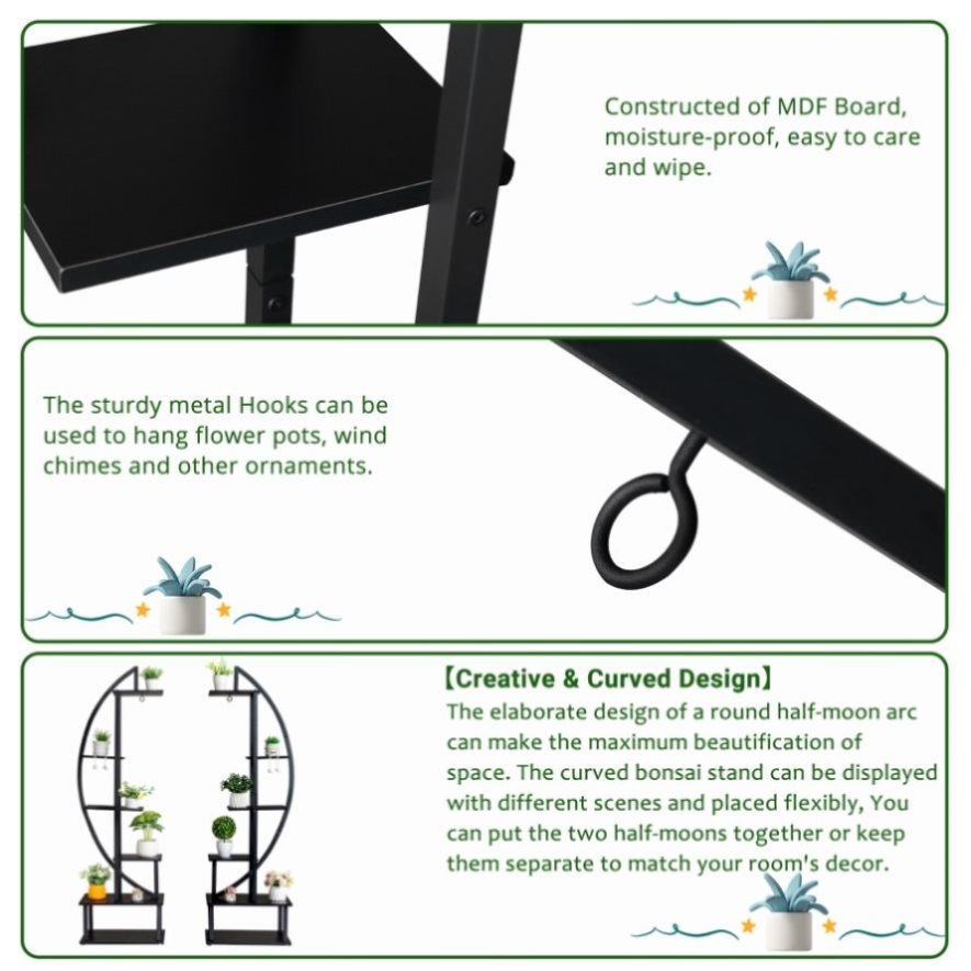 4. Multi-purpose use: you can also use the plant rack to store collectibles, knickknacks, photo frames, books, handicrafts, etc.