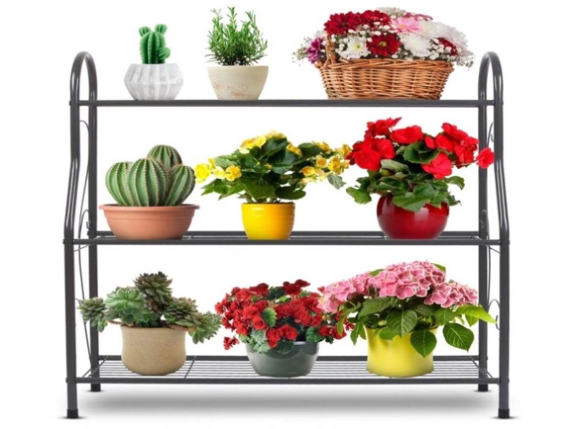 - 3 Tier Flower Display Rack: Vertical design makes full use of your space and provides spacious storage. It is not only a flower display shelf, but also perfect as a storage rack to your living room, bathroom, balcony, kitchen, garden, etc..