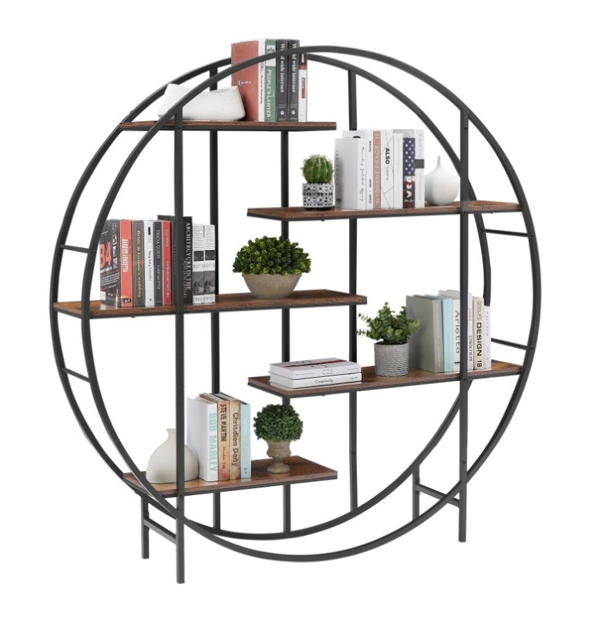Vintage industrial style furniture made of high quality laminated wood with black iron frame for storage and display in living room, kitchen, office or bedroom.Effortlessly increase shelf space with this shelf with 6 open display shelves.Perfect for books, toys, photo frames, photo albums, dolls, flowers, plants, decorations, or kitchen utensils....