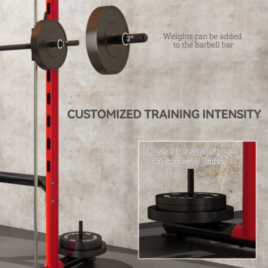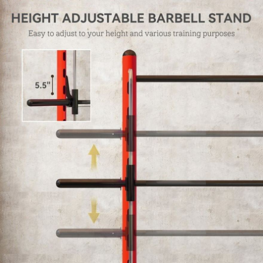 Features: - Combination barbell rack stand, pull-up bar, and barbell bar - 10-level adjustable rack height for barbell - Easy and convenient storage for weight plates, offering a place for two stacks - Barbell bar fits all 2" or 1" hole Olympic or standard weight plates - Suitable for home,...