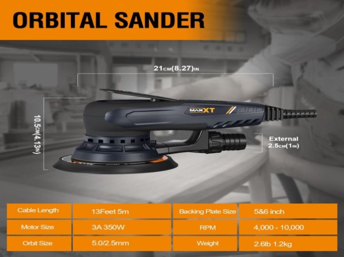 【 Enhanced Performance with EC Motor】 Our random orbital sander is equipped with an EC brushless motor, ensuring a longer lifespan and delivering constant and powerful performance. This motor design enhances stability during use, effectively reducing vibration transmitted to your hand, minimizing fatigue, and improving overall comfort throughout your sanding tasks