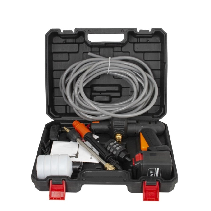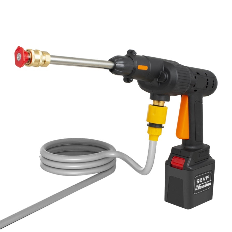 This wireless car washing machine is equipped with two water gun tubes, namely an adjustable integrated plastic water gun tube and a stainless steel water gun tube.