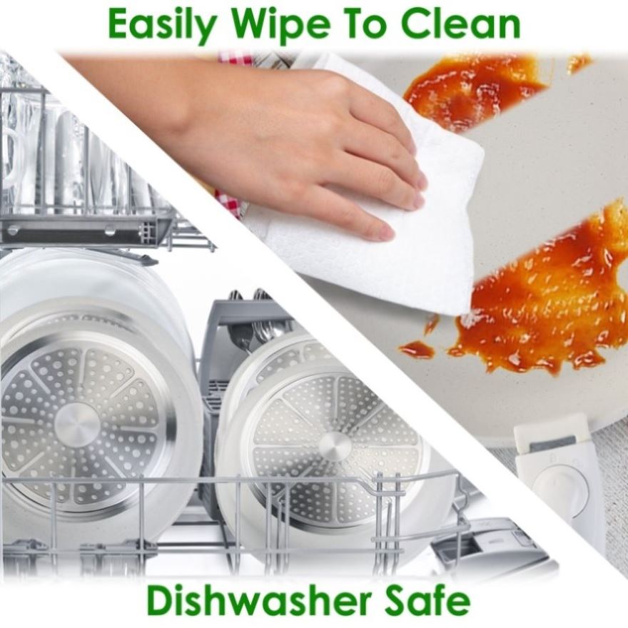 • Even Heating & Easy Cleaning: Energy-saving aluminum alloy bottom makes the pan to heat up more quickly and evenly, absorbing heat efficiently and penetrates the food to stimulate and release the original flavor of the food. Non-stick coating is easy to clean and dishwasher safe, making cleaning at a breeze.