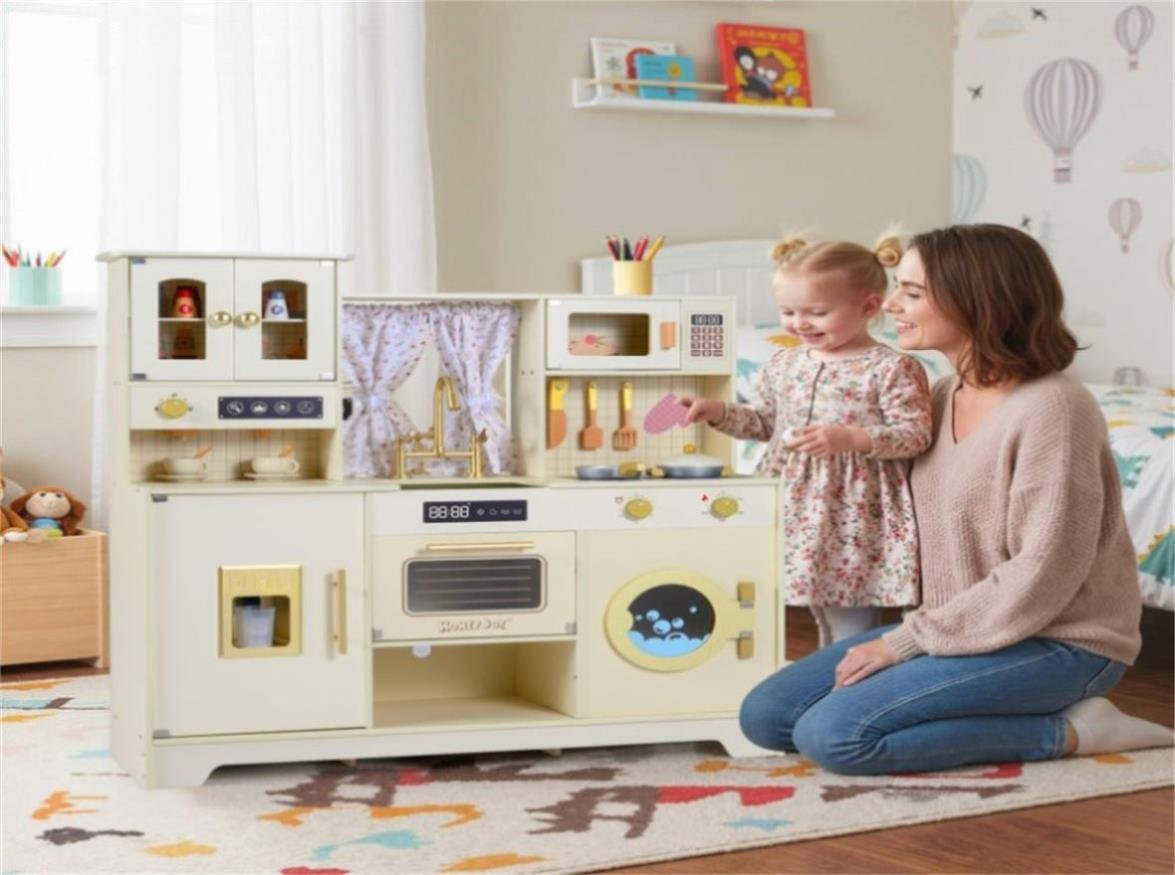 • Interactive Playtime: With exciting features such as an ice maker, coffee maker, baking oven and microwave, little chefs can enjoy realistic and interactive cooking scenarios.  Meanwhile, this toy not only entertains but also educates, helping to develop key cognitive and fine motor skills through playful interactions.