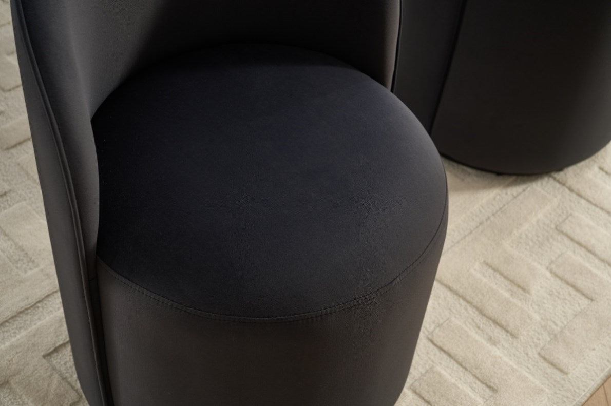 Svelte and smartly scaled, the modern swivel dining chair adds fluid movement to the space. Featuring shapely drum style seating, this adorable chair is ideal for small-space décor.