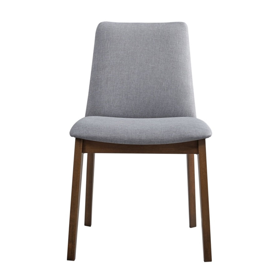 Wooden FrameWalnut FinishPadded Seat & Back CushionFabric UpholsteryWeight Capacity: 220LBS Product Description Dimension:-Side Chair: 25"W X 20"D X 31"HProduct Description:Complete your casual dining area with this set of two stylish side chairs. Finished in rich walnut, these chairs feature comfortable gray fabric upholstery on both the seat and back, with...