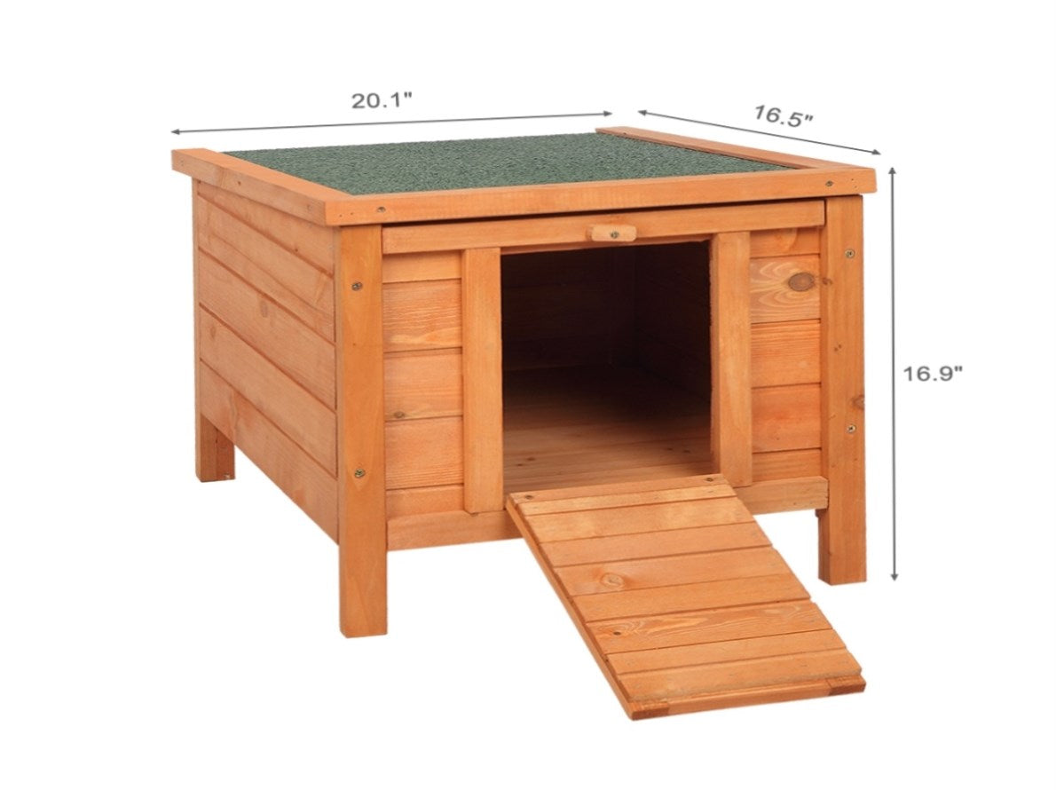 If you are looking for a suitable pet house for your beloved pet, you can't miss this 20" Wooden Waterproof Rabbit Hutch Pet Bunny Small Animal House Habitat. Adopting durable fir wood, it can withstand most weather conditions and keep your pets safe. The roof is made of an asphalt textured shingle that is waterproof and more durable, and it has an adjustable arm to keep it up that allow you to feed and clean your pets easily. Moreover, the front door open into a ramp that allow pets to climb up into the house or climb down out of it. So what are you waiting for? Just buy it!