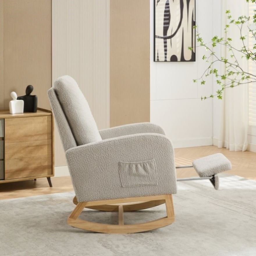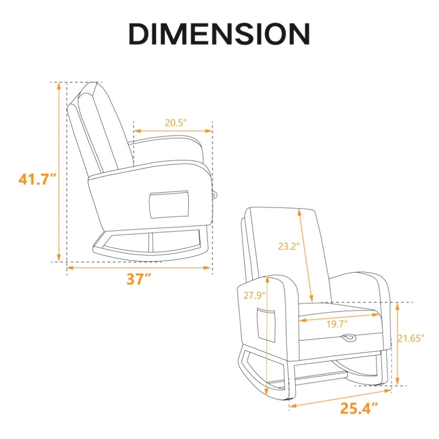 Side Pockets:This rocking chair has side pockets for items like unfinished books and remote controls. Make it more practical for you to use.