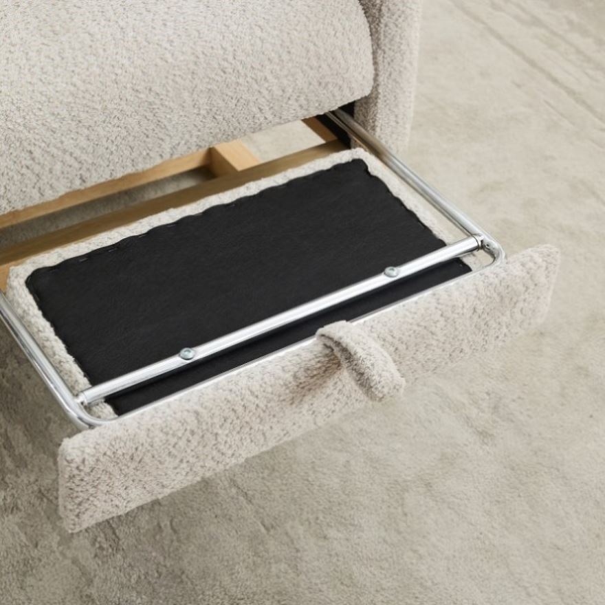 Retractable Footrest:Our nursery rocking chair has a retractable footstool under the seat.This glider chair with an adjustable footrest is perfect for enhancing the aesthetics of your home while offering a comfortable spot to relax.