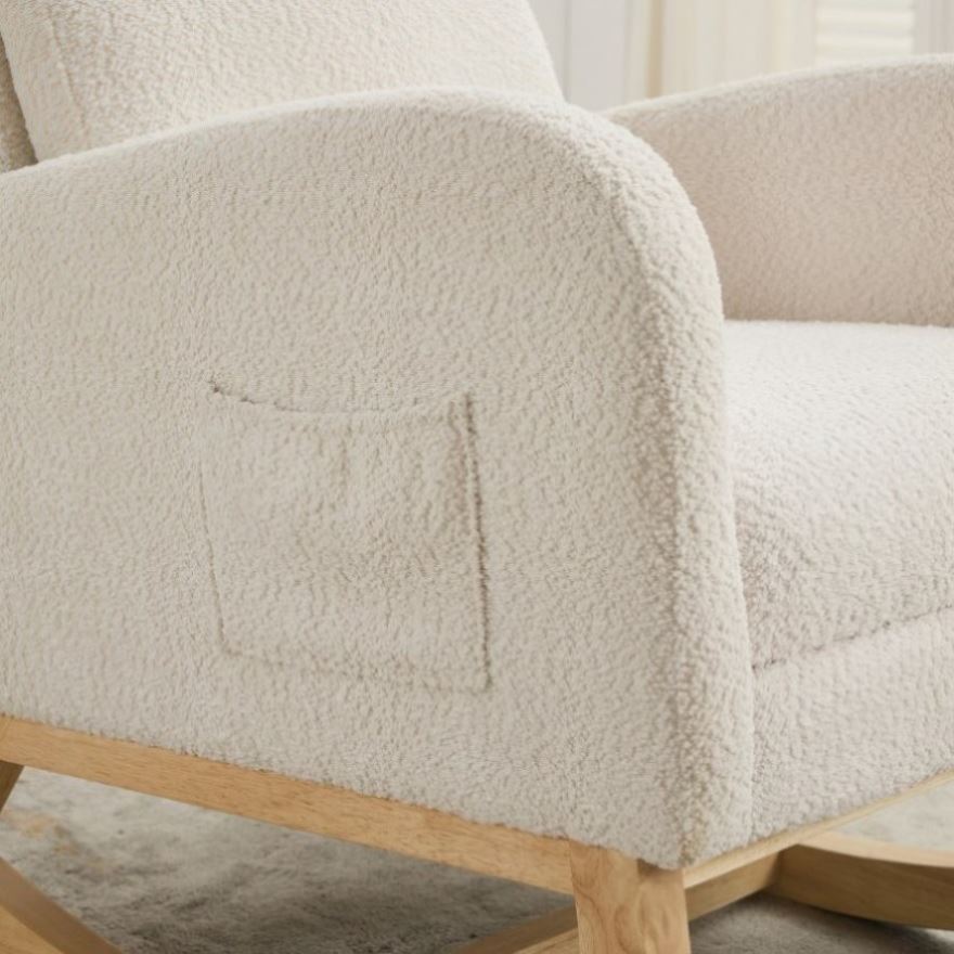 Side Pockets:This rocking chair has side pockets for items like unfinished books and remote controls. Make it more practical for you to use.