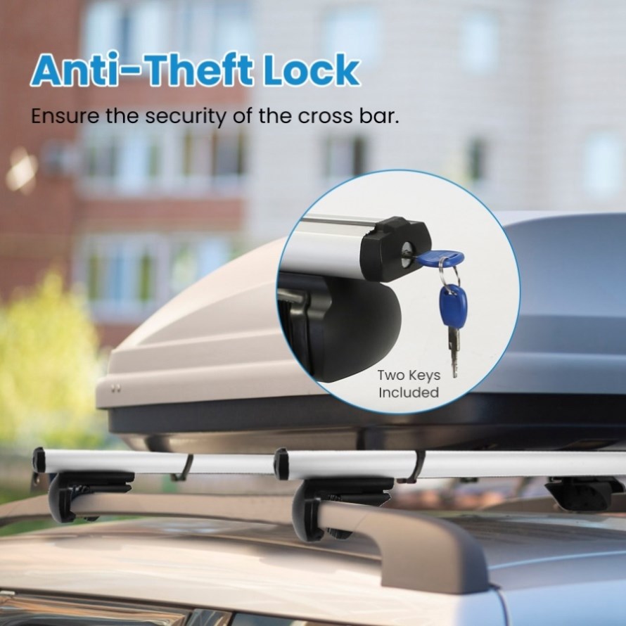 - Considerate Anti-Theft Lock: Each cross bar comes with an anti-theft lock to ensure the security of the cross bar. Besides, the rubber pad inside the clamps can effectively protect your car roof side rail from scratches.
