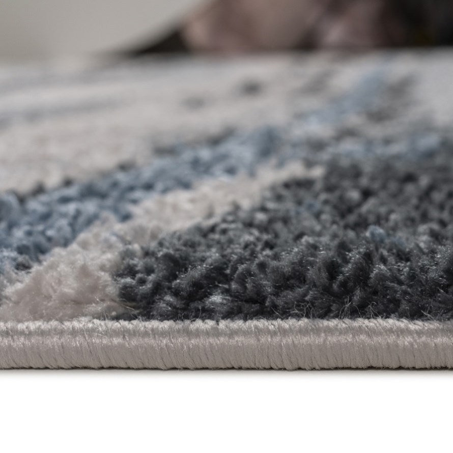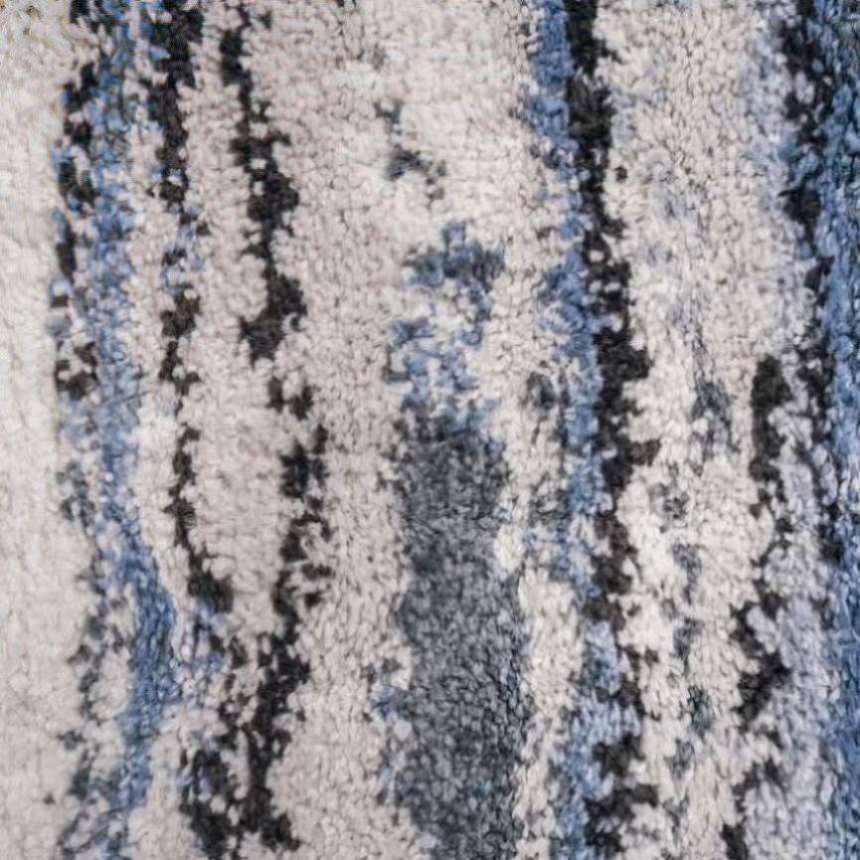 Abstract woven area rug made in Turkey Featuring watercolor abstract stripe design in shades of blue Machine woven plush rug Super soft high pile rug well suited to high traffic areas Easy to clean; use brushless vacuum or spot clean Transparent sprayed latex reverse; rug pad is still highly recommended...