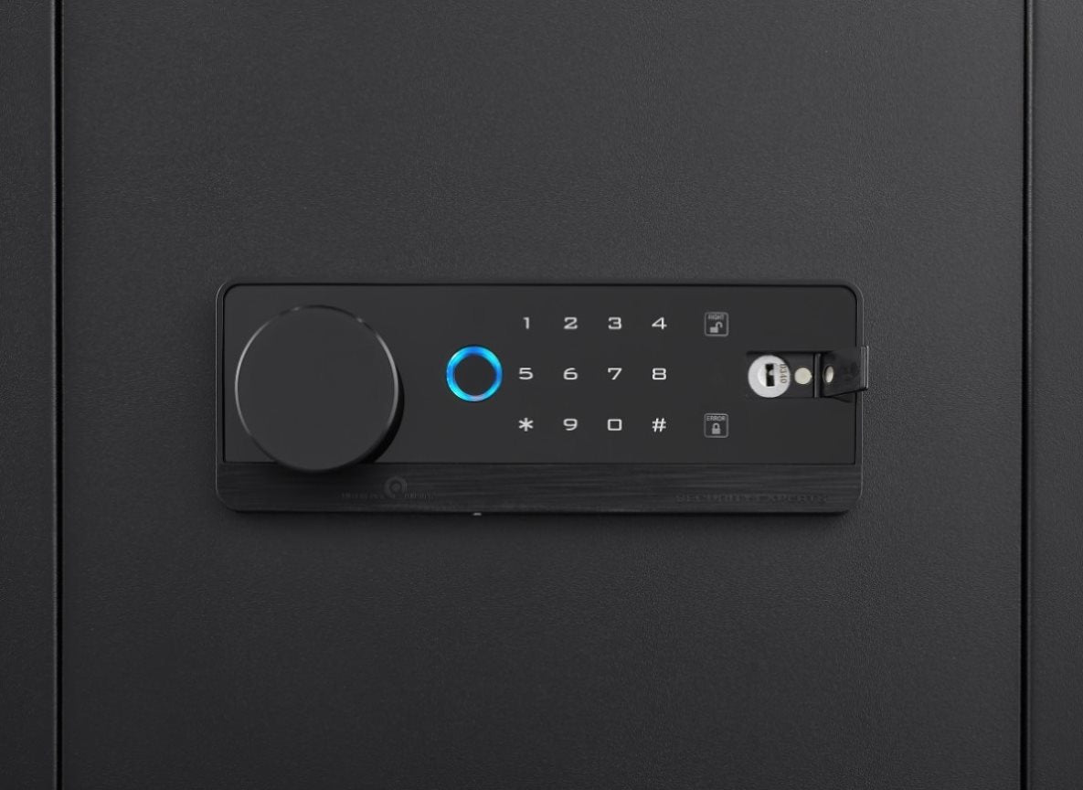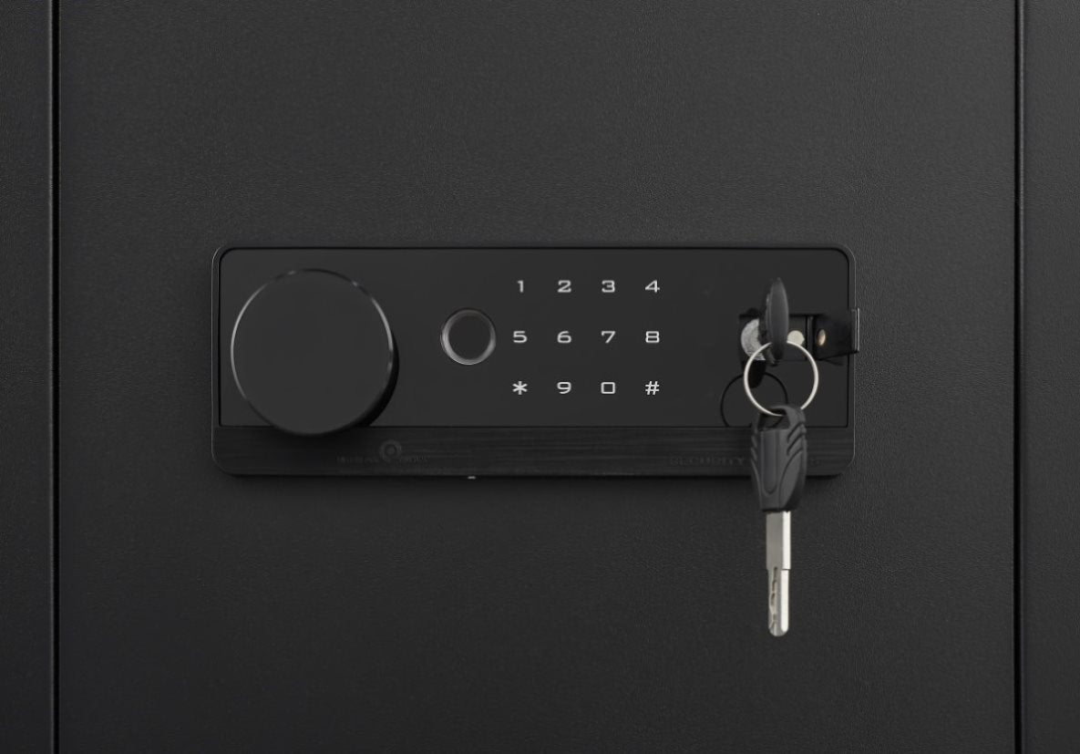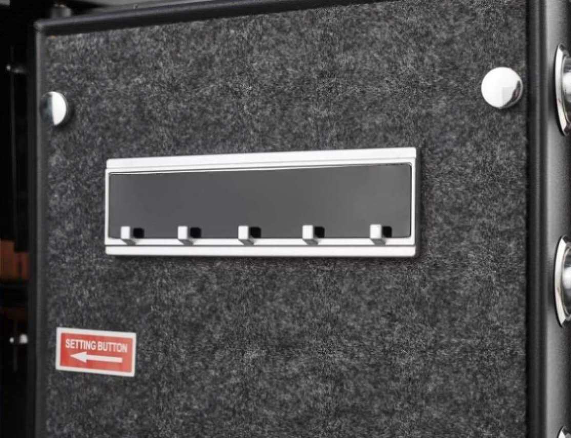 his Large Digial Home Security Safe is designed with numeric keypad and spare keys. The protruding sloped design of the keyboard is more ergonomic than a flat keyboard and protects your cervical spine. Programmable code can set your own code to open the safe box quickly. You can also use the key to open the safe. Each safe keyhole has a unique code