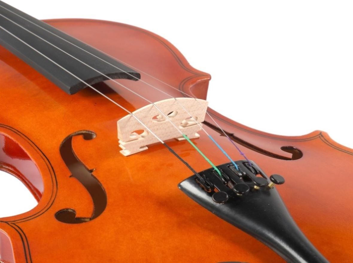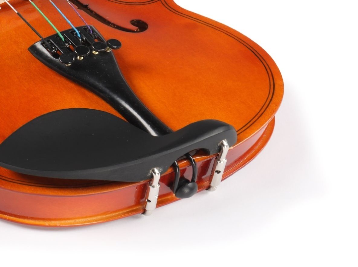 1. When you receive the violin, please notice that the bridge is wrapped in paper and stowed underneath the tailpiece. Don't discard it. It should be installed in the middle of the two F Holes.