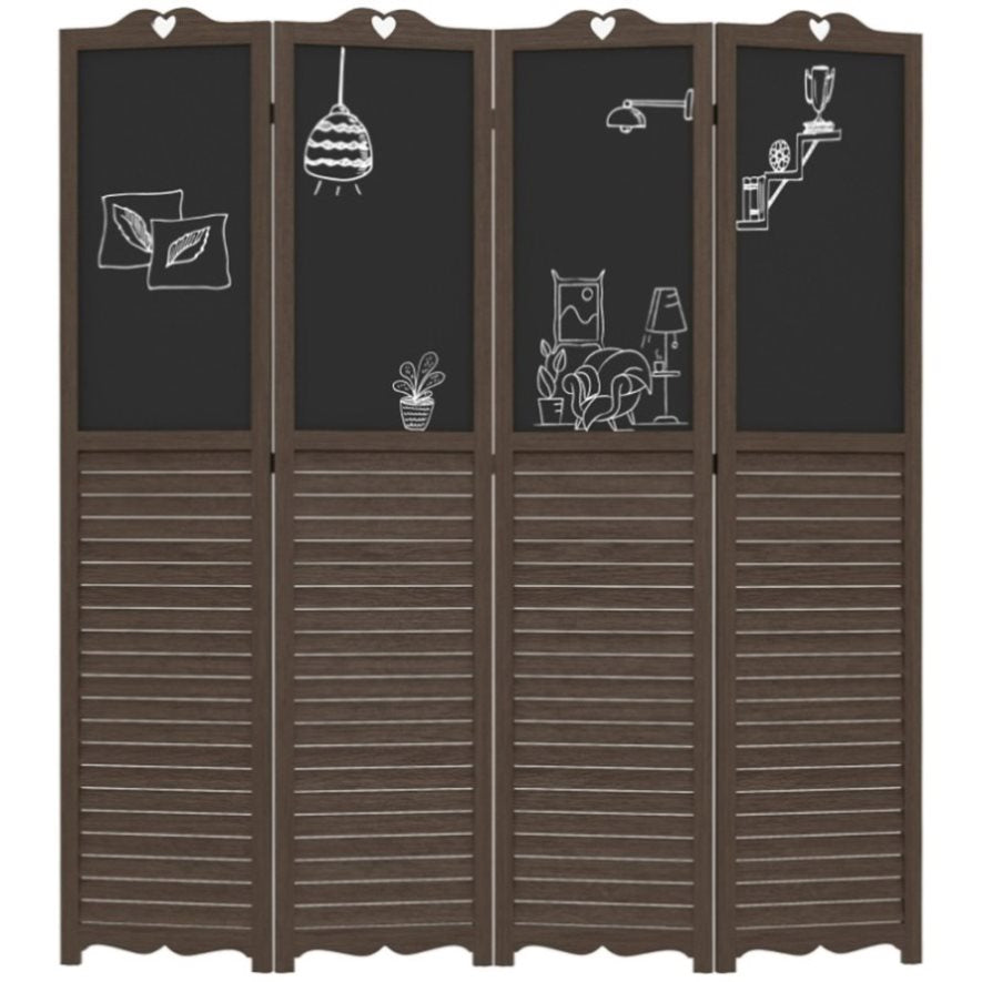 Features: - Great for creating a personal space or dividing up large rooms - Folding design with four panels, easy to create a new look and space-saving to store - Solid wood with blinds patterns for solidness and a rustic feeling - With blackboard to write notes or draw designs...