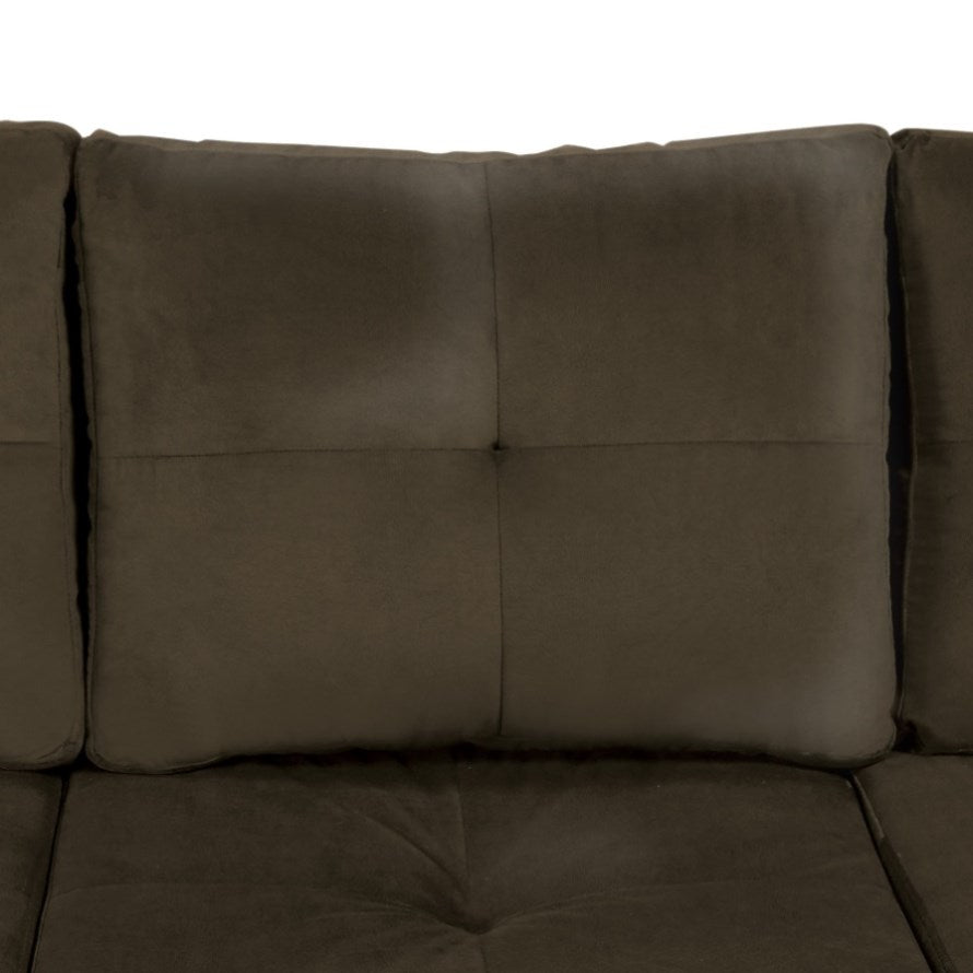 Country of Origin: VietnamSolid wood and plywood frameHigh-density foamCoffee color microfiber fabric upholstery2-seater: Reversible back and loose seat cushionsChaise: Reversible back and seat cushionsRemovable cushion coversExposed legs with faux wood finishTufted detail, Reversible configurationWeight capacity: 300lbs per seat Description & Dimensions Not every home is created the same and the...
