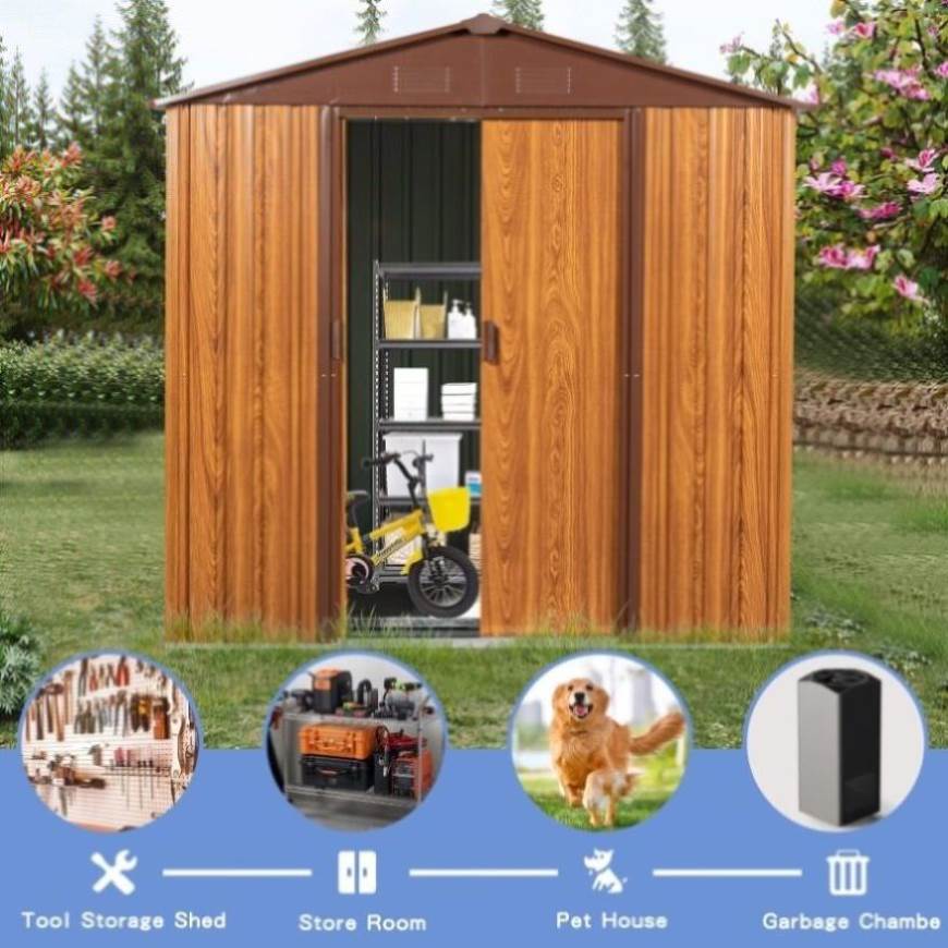 6 Ft. W X 6 Ft. D Metal Storage Shed Appealing horizontal siding in woodgrain with coffee trim to W54071035