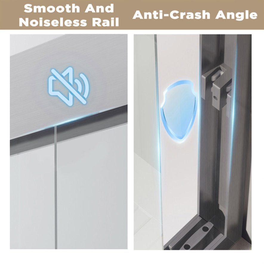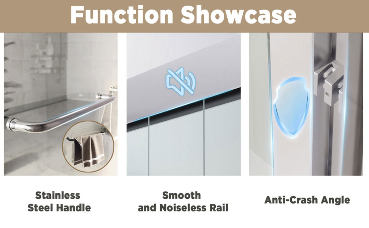 Durable Aluminum Frame: Lightweight, corrosion-resistant, and long-lasting.Stainless steel long handle: Rust-proof and oxidation-resistant, maintaining a shiny finish over time.6mm(1/4")Tempered Glass with Safety Film: Shatterproof protection for the safety of your family.Modern Minimalist Design: Brushed Nickel frame paired with transparent glass, matching any bathroom style.Easy-to-Clean Surface: Resists dirt buildup for effortless...