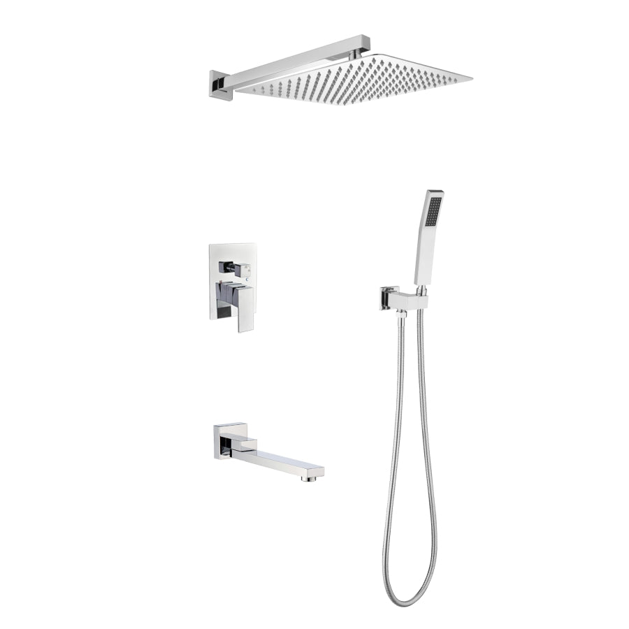 Wall mounted shower system combo with hand shower, 12 inch shower head and tub spout W928100850