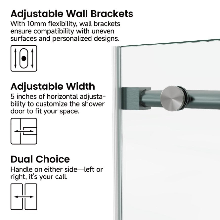 Tempered Glass: Crafted with 3/8" (10mm) thick SGCC certified clear tempered glass, our glass shower door is tough and durable with resistance to impact and scratch, reducing the risk of injury from sudden breakage.