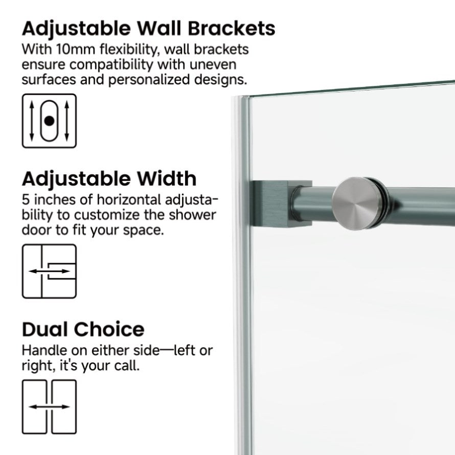 Tempered Glass: Crafted with 3/8" (10mm) thick SGCC certified clear tempered glass, our glass shower door is tough and durable with resistance to impact and scratch, reducing the risk of injury from sudden breakage.
