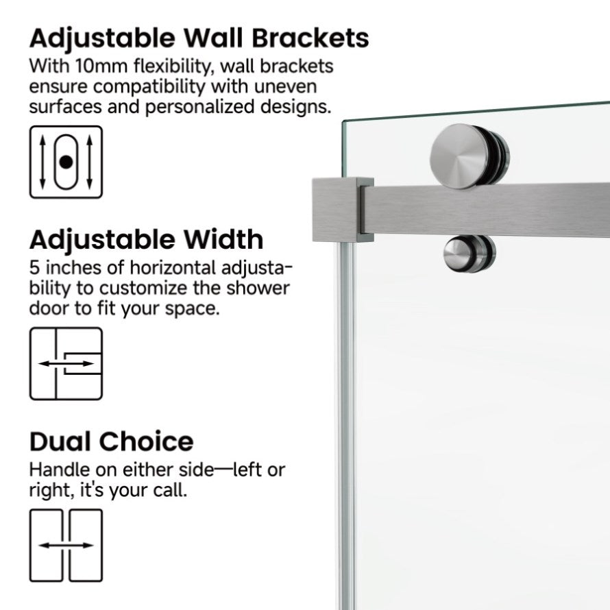 Tempered Glass: Crafted with 3/8" (10mm) thick SGCC certified clear tempered glass, our glass shower door is tough and durable with resistance to impact and scratch, reducing the risk of injury from sudden breakage.