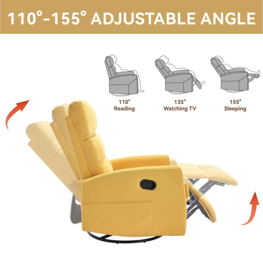 Manual Recliner Chair with Rocker and Swivel in Fabric for Living Room, Yellow W3224P289295