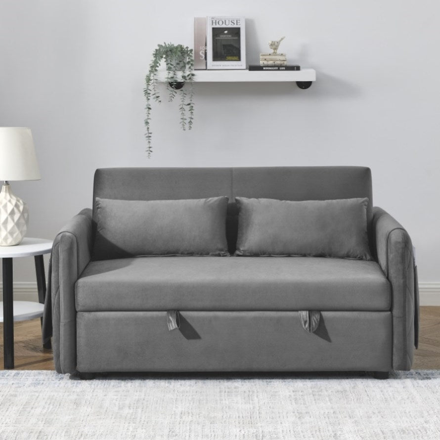 55" Modern Convertible Sofa Bed with 2 Detachable Arm Pockets, Velvet Loveseat Sofa with Pull Out W119363990
