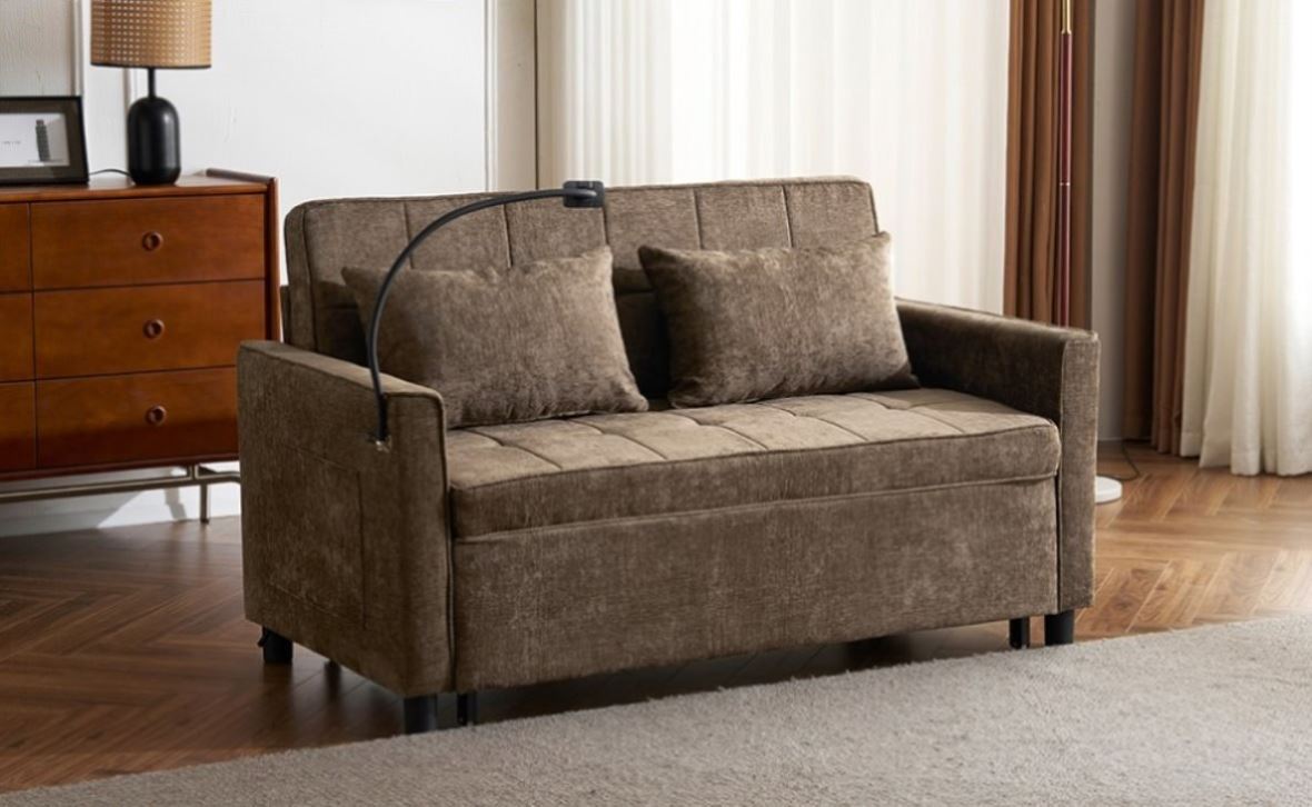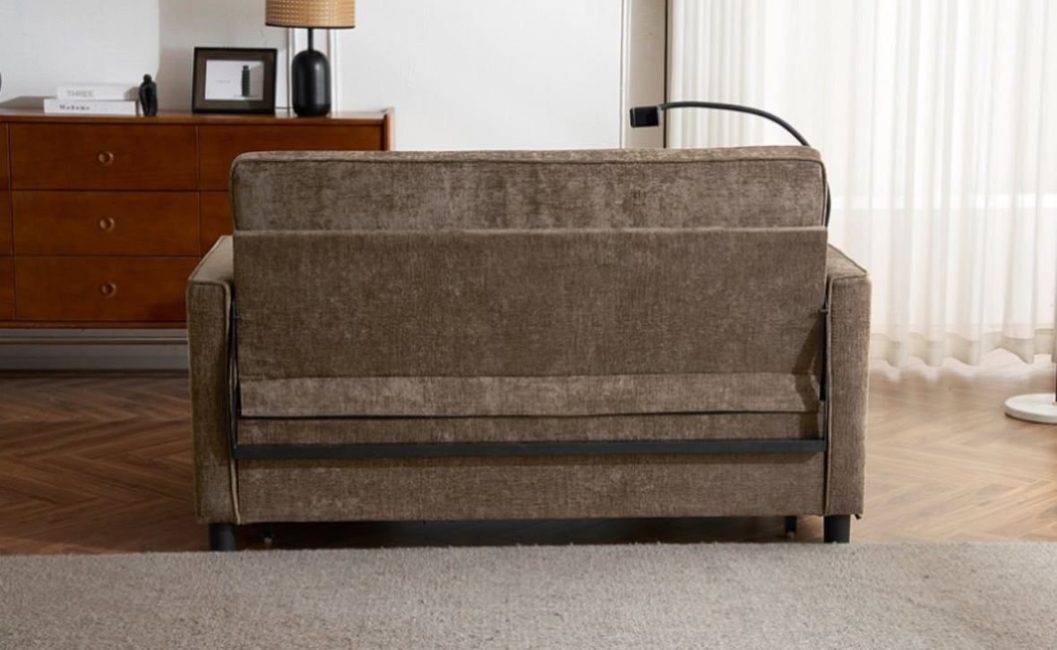The 56.9" convertible sofa bed seamlessly blends sleek design with exceptional functionality, making it a perfect choice for contemporary interiors. Upholstered in soft chenille, it offers a warm and inviting touch. This sofa bed features two USB ports for convenient device charging, a phone holder to free your hands, a reclining backrest for customized comfort, and handy side pockets for storing essentials. When fully extended, the sofa measures 69.5" in depth, providing ample sleeping space without sacrificing style. Ideal for small apartments or guest rooms, this sofa bed ensures your guests enjoy a restful night’s sleep.