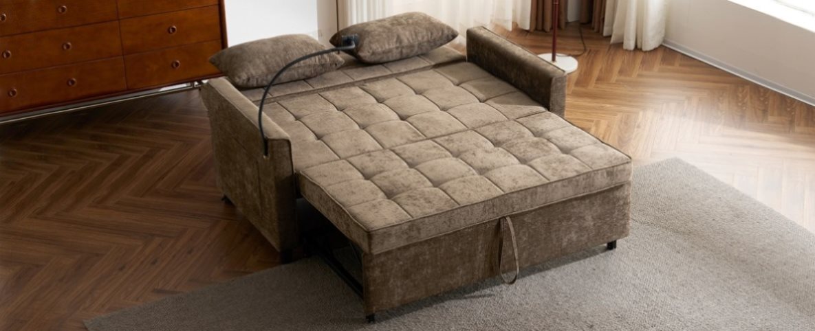 Thoughtful Design - The sofa bed is equipped with two USB ports and a phone holder, offering incredible convenience for modern living. With the USB ports, you can easily charge your devices while relaxing on the sofa bed, eliminating the hassle of searching for outlets. The phone holder keeps your device within reach, allowing you to watch videos, browse, or video chat without needing to hold your phone.