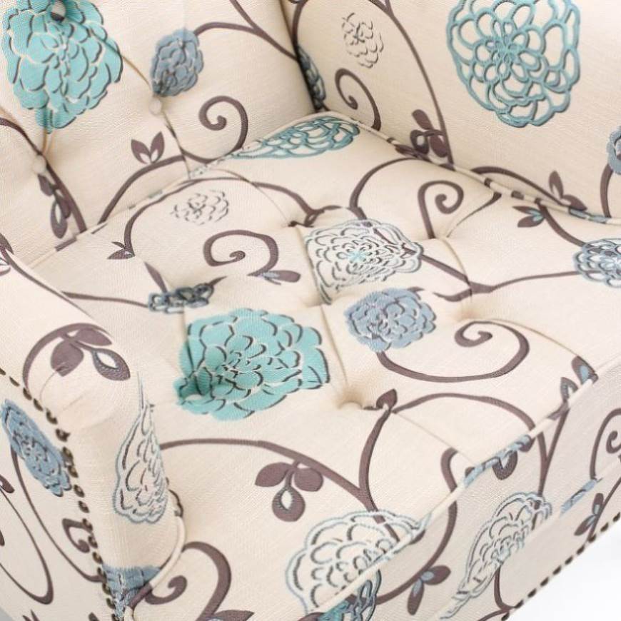 Contemporary Tufted Club Chair, Blue and Light Beige Floral Fabric
