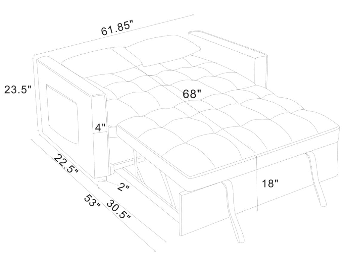 Upgrade your living space with the perfect blend of style, comfort, and functionality. The Sienna Tufted Convertible Sleeper Sofa effortlessly transitions from a modern sofa to a spacious sleeper bed, ideal for hosting overnight guests or enjoying a cozy movie night. Upholstered in durable fabric with a subtle texture, this piece features deep, square tufting for a sophisticated look and plush seating comfort.