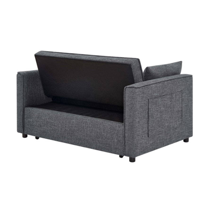 Designed with versatility in mind, the Sienna includes a pull-out chaise lounge extension, foldable seat back, and two matching back cushions for added support. Handy side pockets offer convenient storage for magazines or remotes, while the neutral tone blends seamlessly with any décor style—from minimalist to transitional.