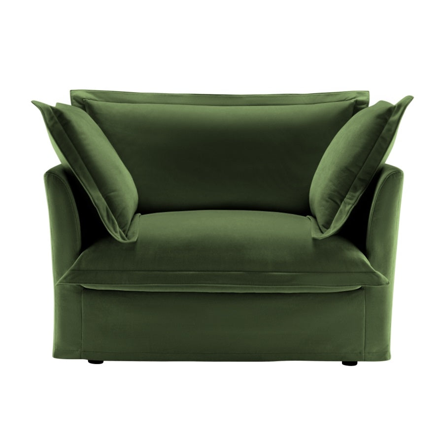 Slip-covered Armchair with 1 Big Back Cushion and 2 Big Toss Pillows, Single Deep Seat Comfy Single W3041P240130
