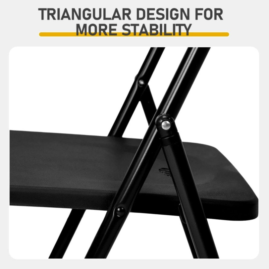 1. Sturdy and Weather-Resistant: Our folding chairs feature a robust triangular structure to provide outstanding stability and each chair supports up to 280 lbs. Built with a sturdy metal frame and high-quality plastic back and seat, these chairs offer long-lasting use both indoors and outdoors.